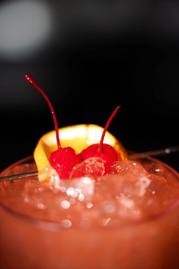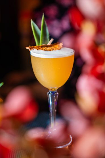 0.0% spiced spirit, orange, lime, pineapple, almond and cherry drizzle
