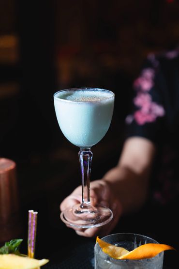 white rum, peach liqueur, ginger, lime, ginger beer and butterfly pea tea