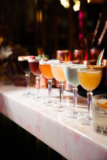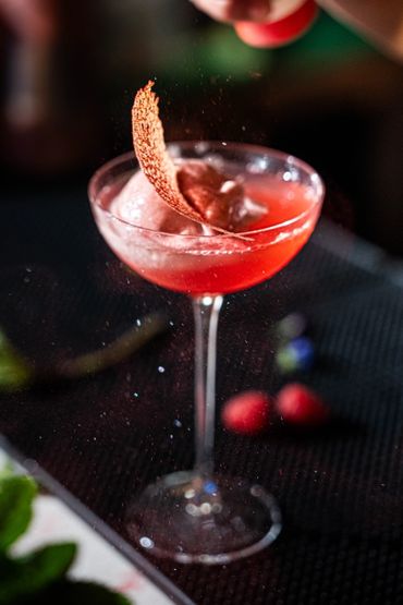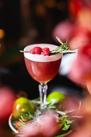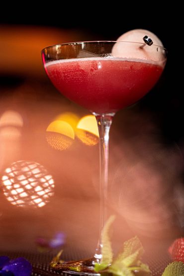pink gin, cherry, lemon, almond, foamer and red wine float