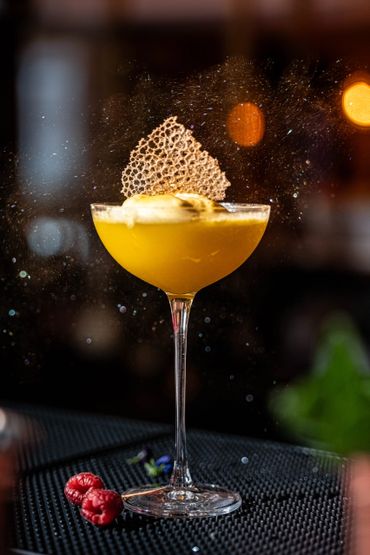 vanilla vodka, raspberry, liqueur, lemon, vanilles, raspberry puree and prosecco
