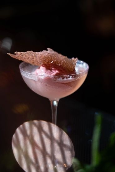 gin, martini bianco, cherry blossom, watermelon, peanut butter and malic acid