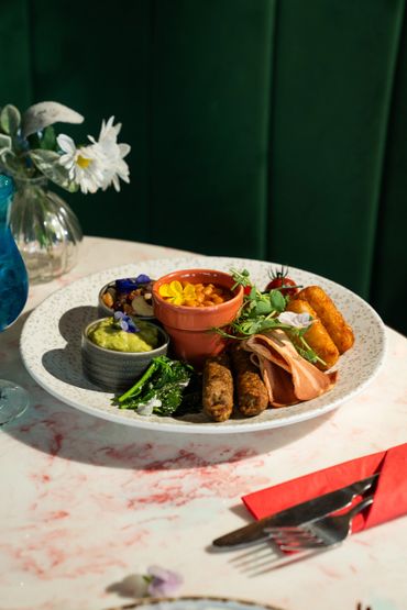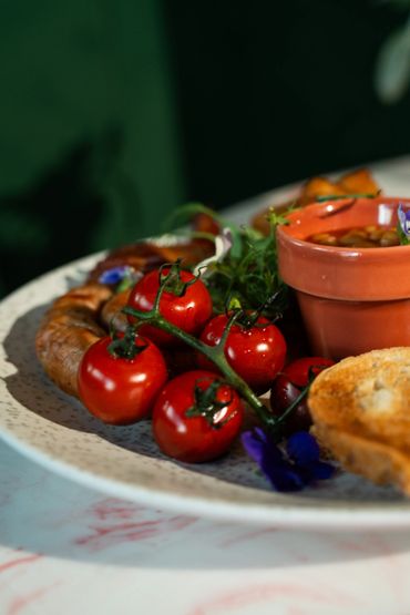 Vegan sausages, vegan bacon, vine tomatoes, sauteed mushrooms, baked beans, potato rosti, smashed avocado, sauteed spinach, mixed seeds & toasted sourdough.